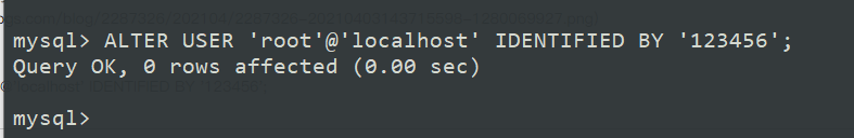 ALTER USER 'root'@'localhost' IDENTIFIED BY '123456';