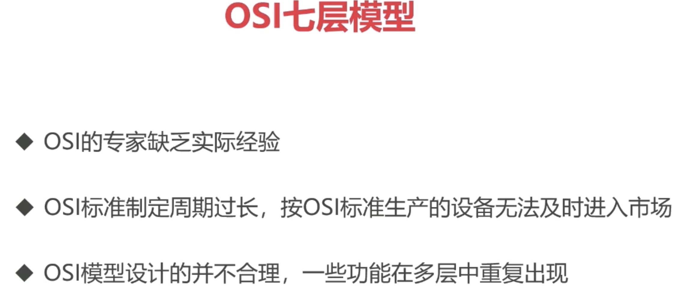 由于以下原因,OS1七层模型并没有被广泛使用起来,目前被广泛使用的是TCP/IP4层模型