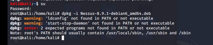 问题2:在kali虚拟机上安装Nessus时,使用dpkg命令,报错如下图所示