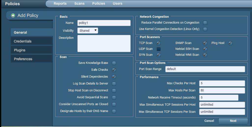 - 点击 Policies,点击 Add 添加一个扫描策略,添加完后要重新进一下软件,否则无法进行下一步
