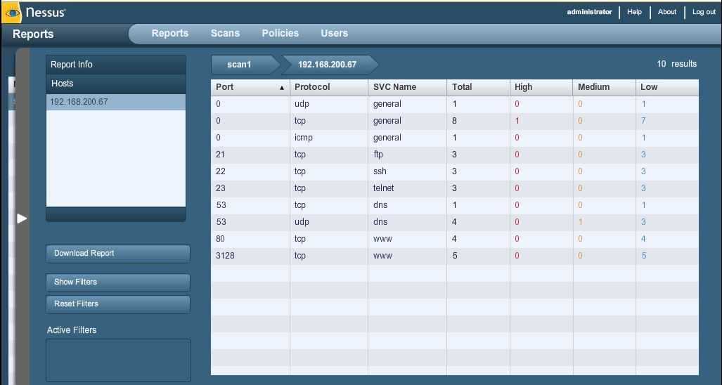 扫描完成后,点击Report可以查看扫描结果,如下图