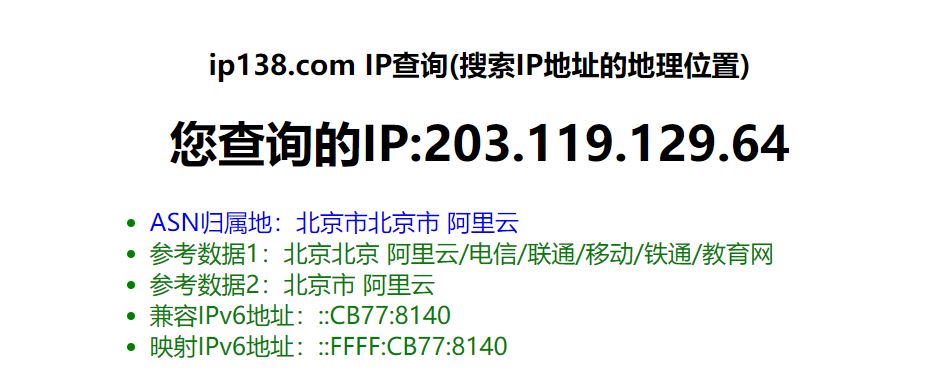 - 首先,通过微信语音联系了一位同一城市的好友,检测到ip地址为203.119.129.64,经查询,地理位置位于北京
