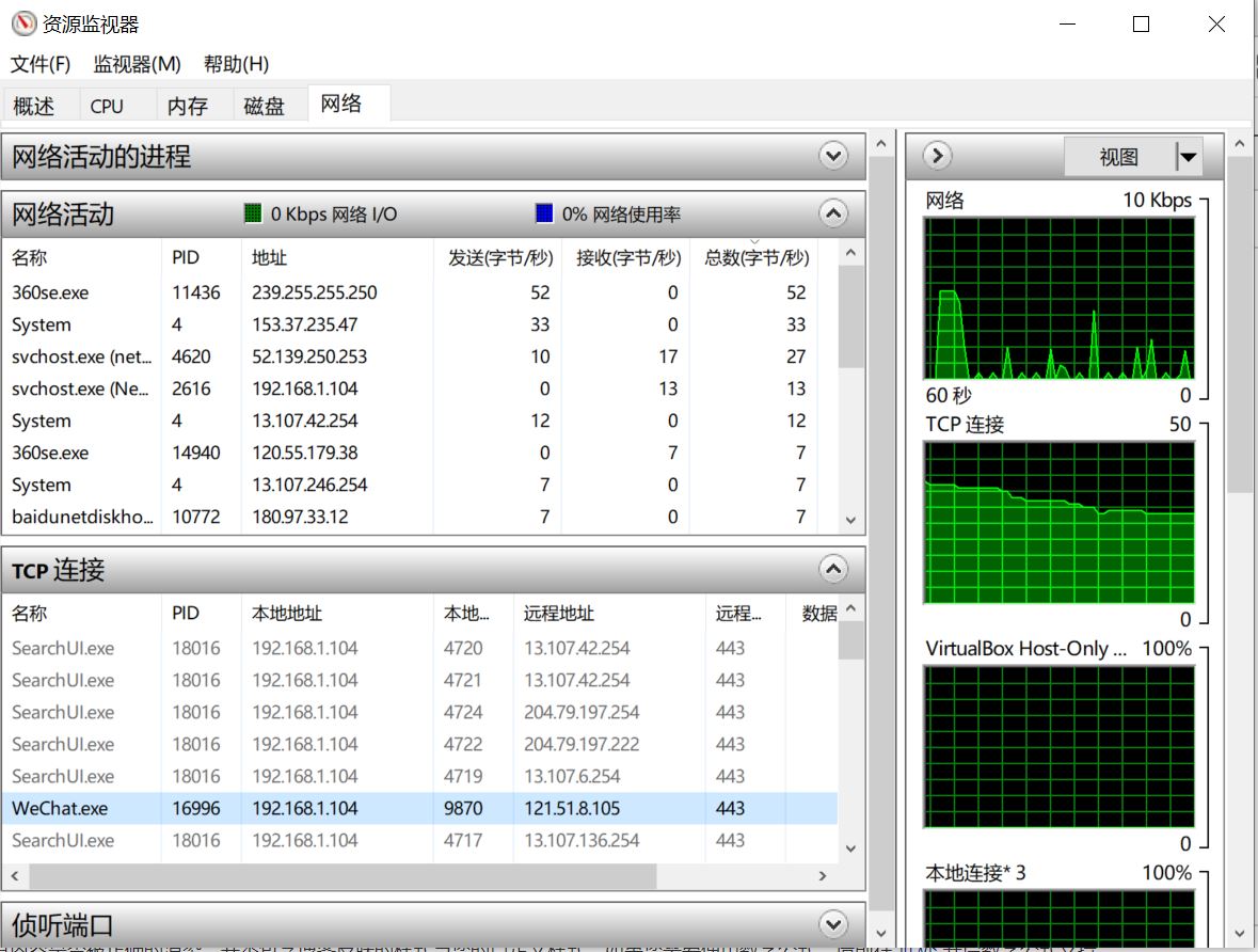 - 于是换一种方法,使用电脑自带的资源监视器,找到网络,进行检测,然而还是天津