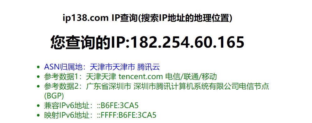 - 然后,问题就来了......通过微信语音联系了一位在山东的好友,检测到ip地址为182.254.60.165,可是经查询地理位置位于天津???
