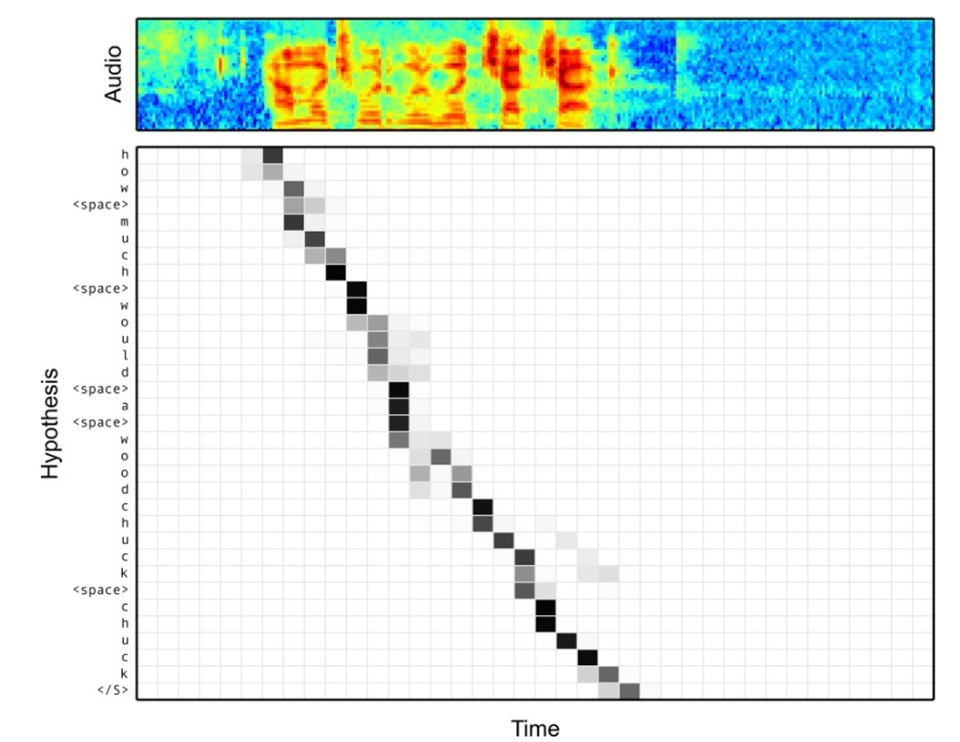 横坐标为Decoder timesteps,纵坐标为Encoder states(Encoder timesteps? 此处存疑)
