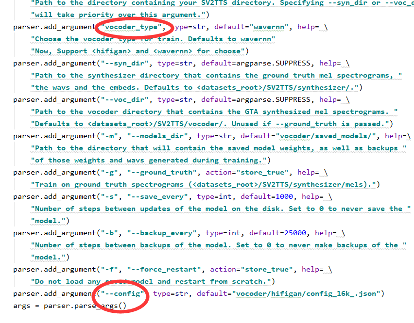 1.vocodr_train.py中:选择需要训练的预训练模型