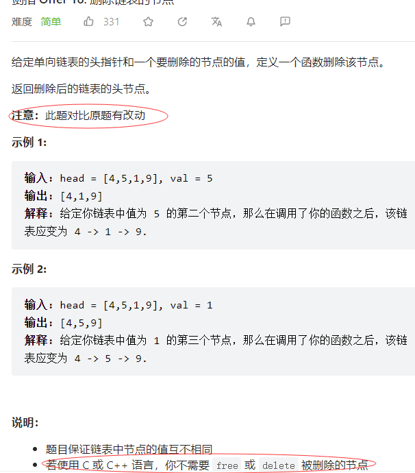 题目:(有改动和陷阱,不可以使用delete否则报错!!)  ``` class Solution { public 阅读全文