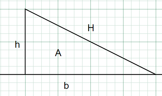 1.设三角形的底边为b,高为h,斜边为H,面积为A