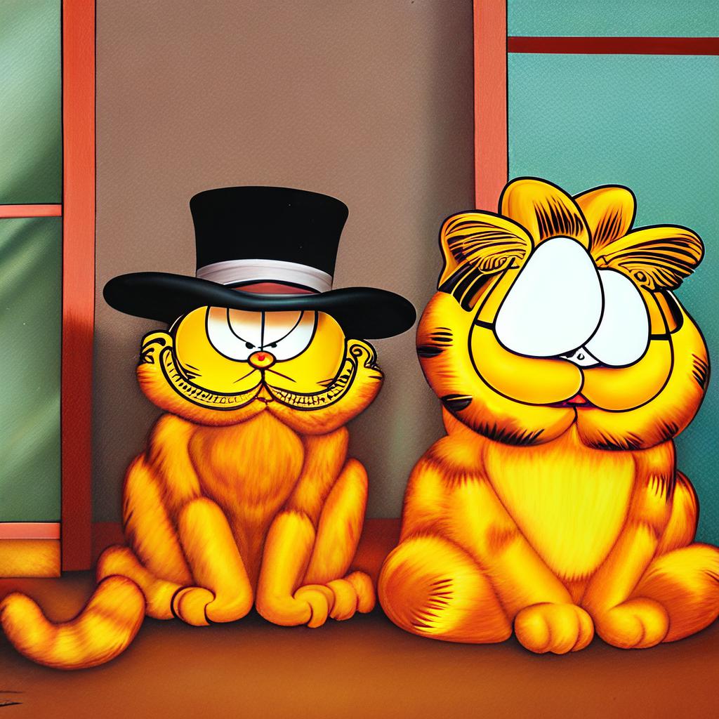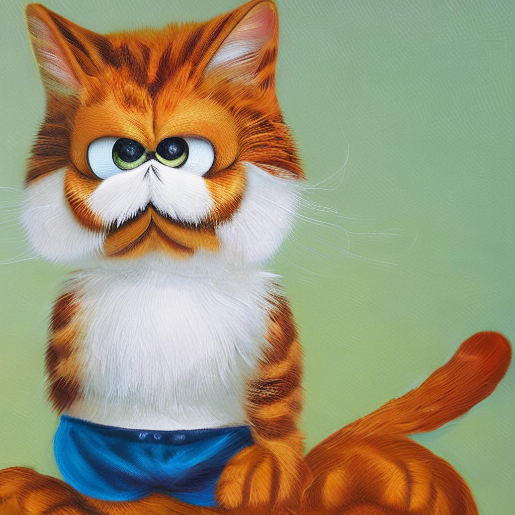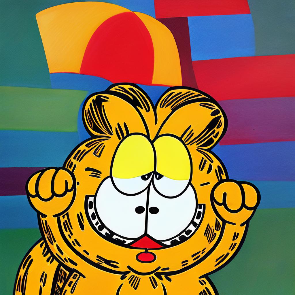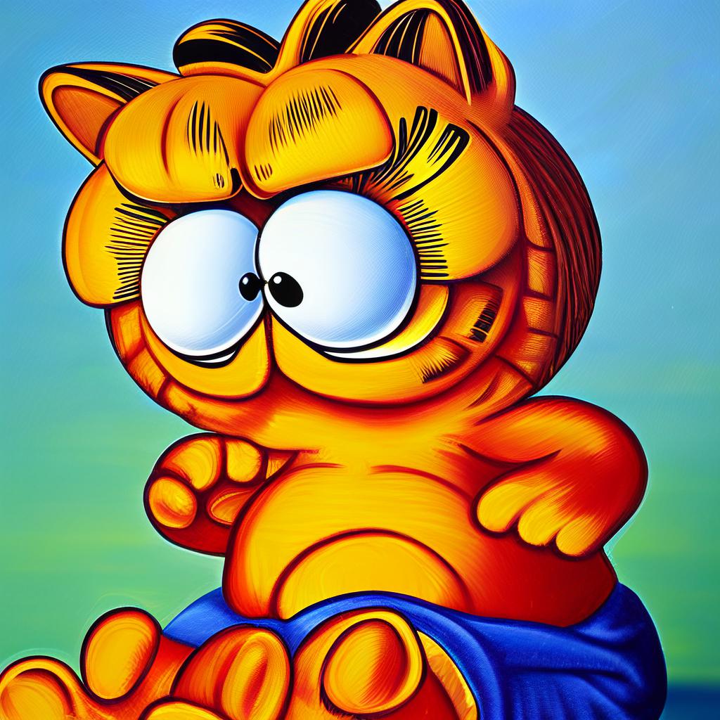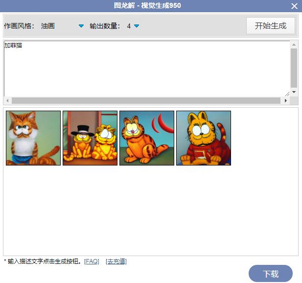 先后选择作品风格-》油画,输出-》4,文本框中给出描述词“加菲猫”,随后快速生成了多张加菲猫的图片,效果是这样的,