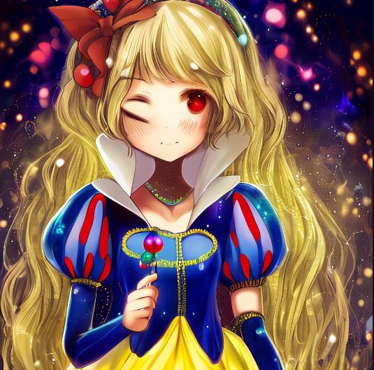 我们还试着给出-》白雪公主,水晶鞋,女巫 ,二次元,输出的效果是这样的