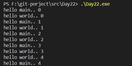 package main import( "fmt" "time" ) func SayHello(){ for i:=0;i< 5;i++{ fmt.Println("hello world..",i) time.Sleep(time.Second) } } func main(){ go SayHello() for i:=0;i< 5;i++{ fmt.Println("hello main..",i) time.Sleep(time.Second) } time.Sleep(time.Second) }![]()