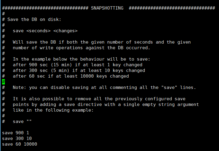 默认的配置条件表示,只要满足以下3个条件中的任意1个,BGSAVE命令就会被执行: