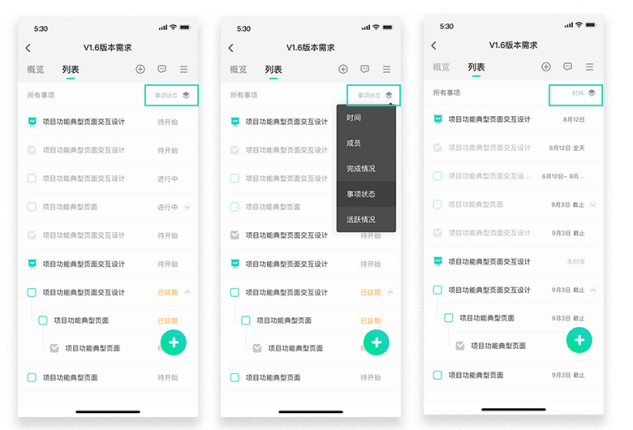 通过事项列表,不仅可以查看项目背后的所有事项。还可以筛选一下,查看不同方面的具体信息。
