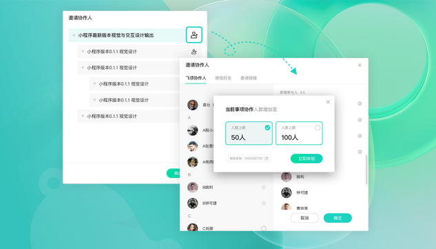 而且,协作人可以免费增加100个人。