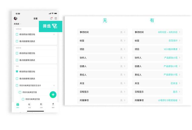 通过飞项的项目列表功能,能够查看计划里的所有事项、筛选你想要的信息。