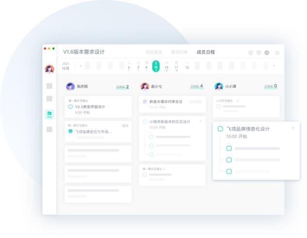 团队计划执行过程中,最怕的就是某个成员掉链子了。通过飞项app的成员日程功能,我们就可以知道团队里所有成员每天的日程安排、任务完成度,让一切都尽在掌握。