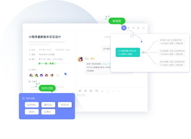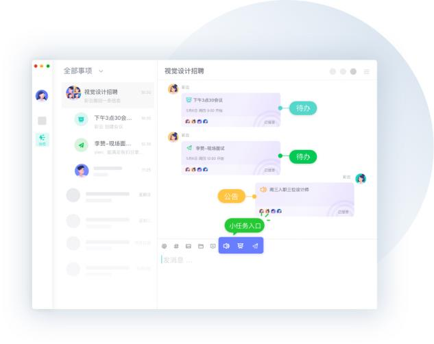 团队计划执行期间,成员们可以在事项IM里实时沟通。沟通的过程中,还可以在小任务中预约会议、发布公告、创建待办。