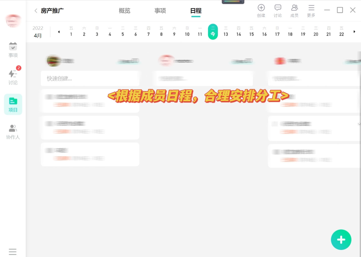 在成员日程里面可以看到每一个小伙伴的时间安排,可以根据这个时间安排来给她们进行合理分工,从而让大家更好的完成工作。