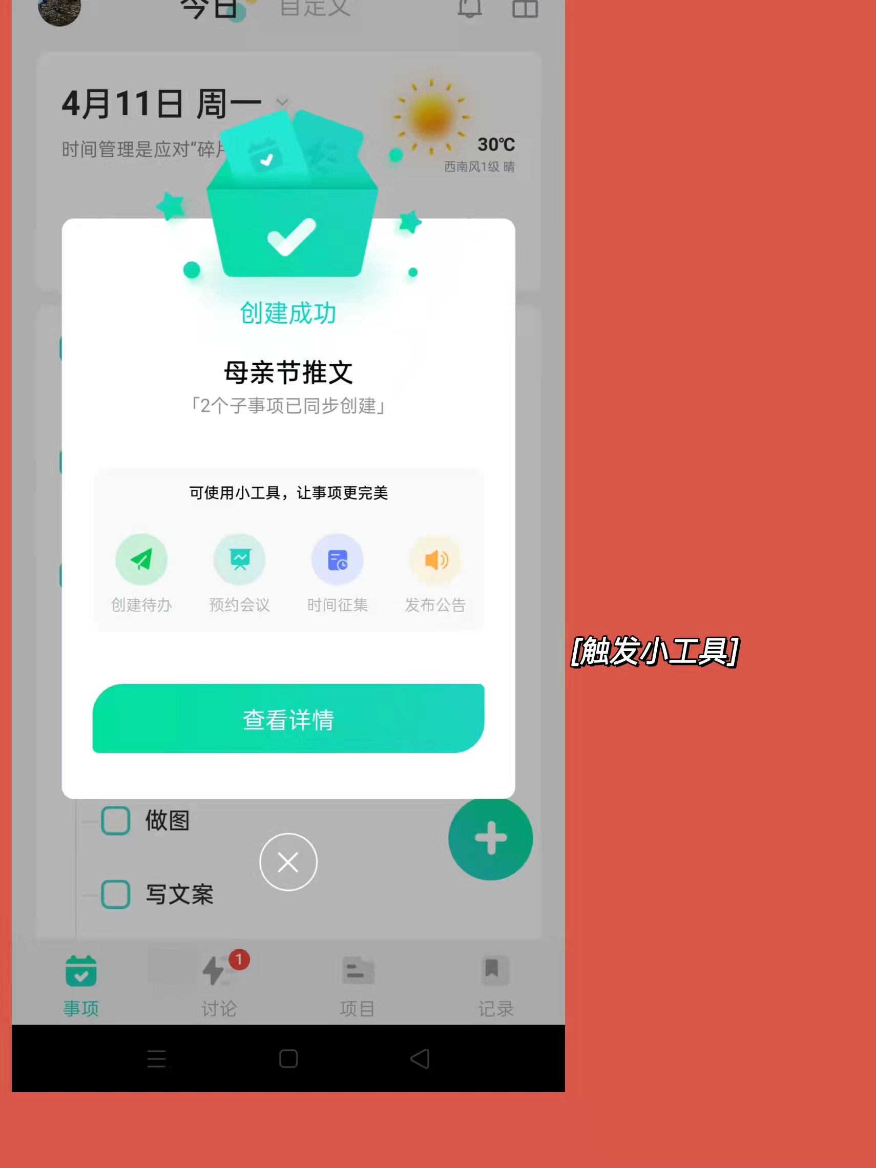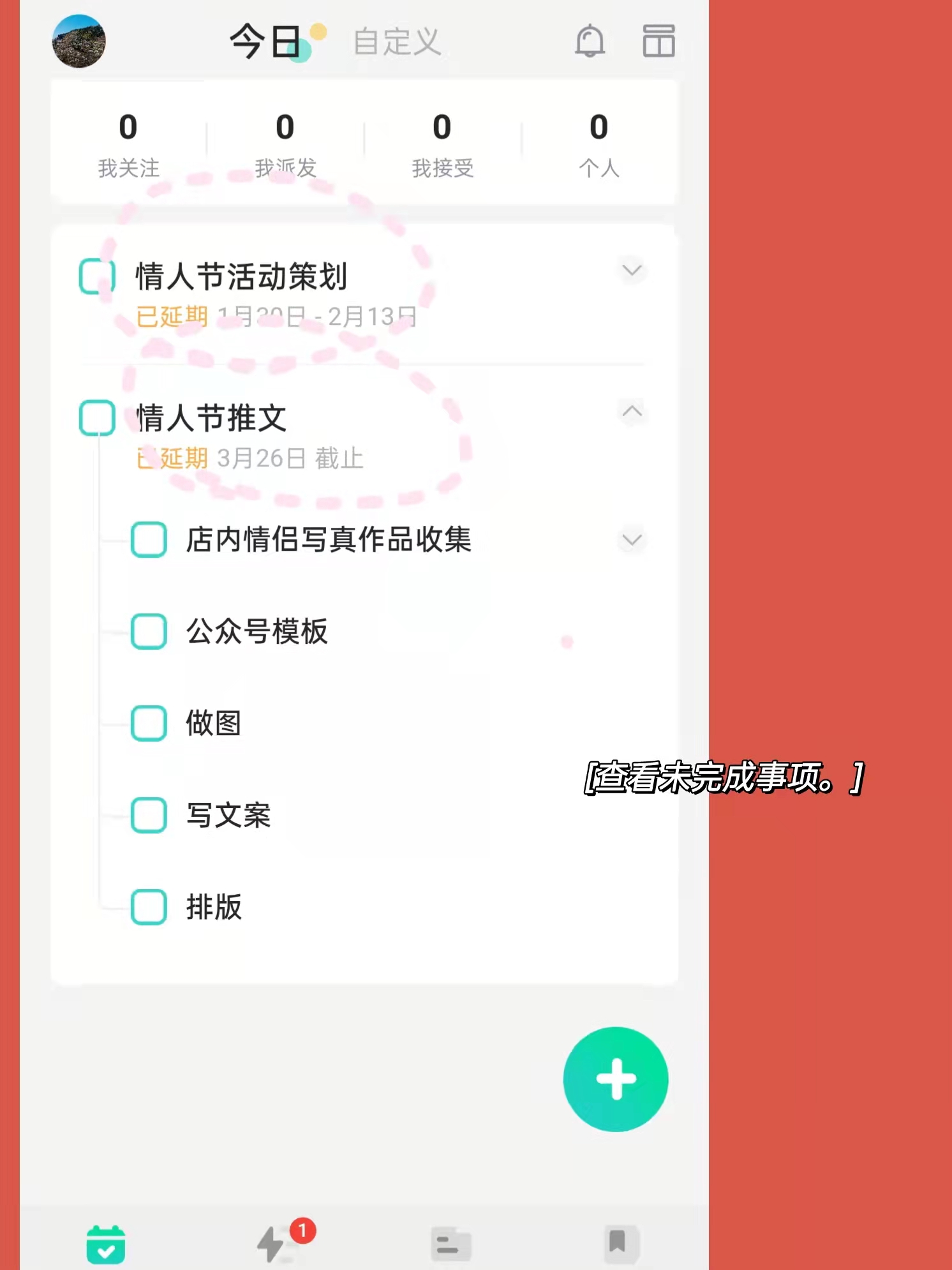 我每天就是这样子创建自己的任务,把事关其他人的任务添加个协作人分发给他们去完成,然后打卡自己的任务,同时老板还可以看到任务进度。