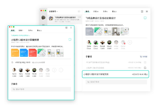 事项派发后,可跟进事项动态,到时提醒实时到位,过滤低价值操作信息,避免信息干扰,每个事项都拥有独立的IM,沟通过程中可边聊边发起待办、标重点等。最后结构化沉淀重要协作过程,让成员秒懂,让回顾简单,让沉淀有的放矢。