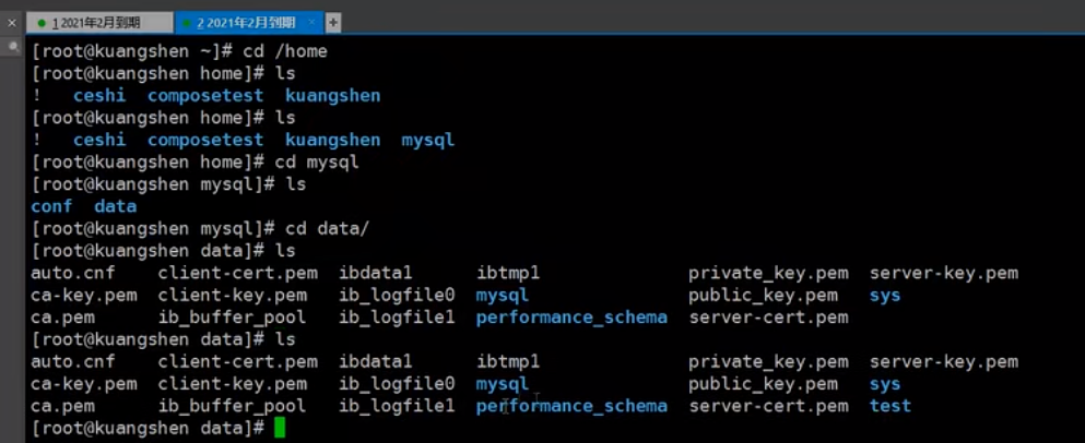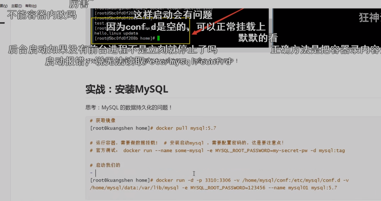 mysql的容器里的/var/lib/mysql是后生成的,所以宿主机是有文件的,与conf.d目录不同,自己创也有的呀