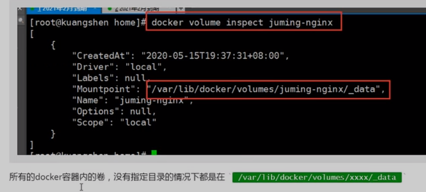 docker run -d -P --name nginx02 -v juming-nginx:/etc/nginx nginx