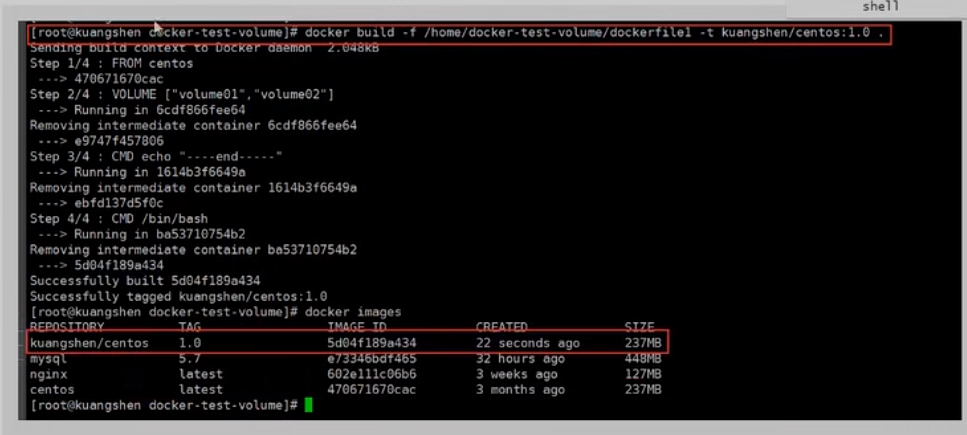 docker build -f /home/docker-test-volume/dockerfile1 -t kuangshen/centos:1.0 .