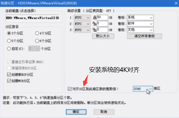 - HDO是电脑的硬盘——右键选择快速分区——建议C盘的空间至少在50G以上