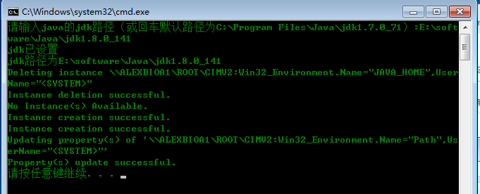 这里默认设置了java jdk的安装路径为C:\Program Files\Java\jdk1.7.0_71,如果你的jdk安装路径不在此,可在执行此命令的时候,会有提示输入jdk安装路径,输入即可。