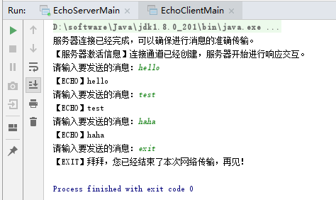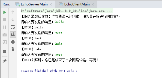 先启动服务端,再启动客户端,测试如下: