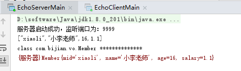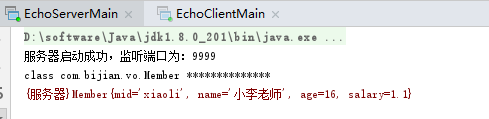 先启动EchoServerMain.java,再启动EchoClientMain.java,效果如下: