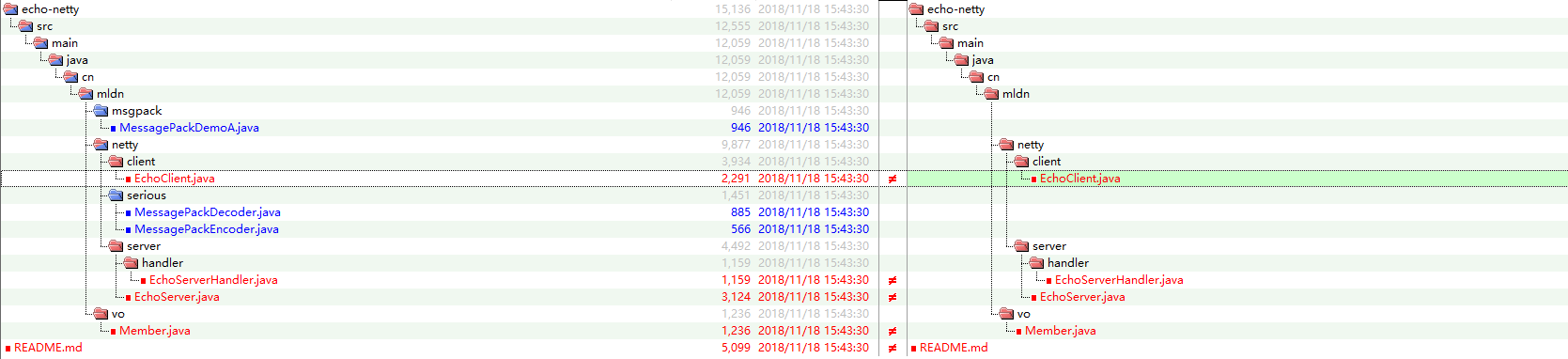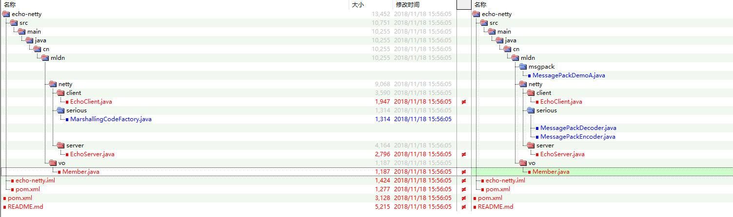 MessagePack实现传输序列化与使用Java原生的序列化程序管理实现对象网络传输项目的变化如下: