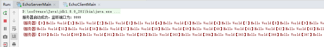 如下实例也可以看出:在进行数据传输时,Netty可以保证长连接。