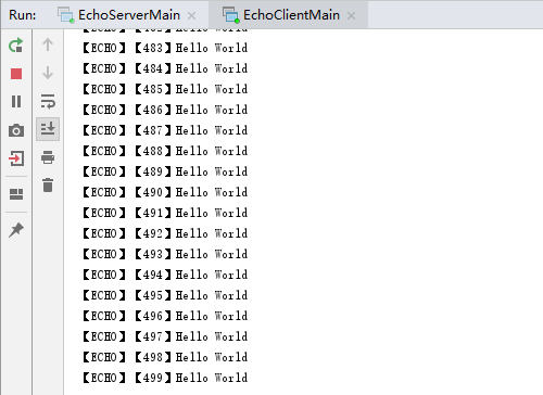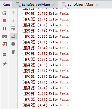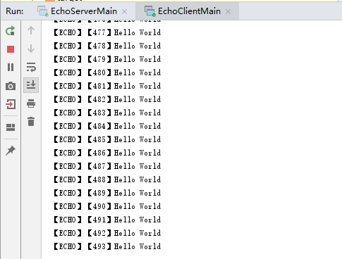 package com.bijian.netty.client.handler; import com.bijian.netty.util.InputUtil; import io.netty.buffer.ByteBuf; import io.netty.buffer.Unpooled; import io.netty.channel.ChannelHandlerContext; import io.netty.channel.ChannelInboundHandlerAdapter; import io.netty.util.CharsetUtil; import io.netty.util.ReferenceCountUtil; import io.netty.channel.ChannelHandlerContext; import io.netty.channel.ChannelInboundHandlerAdapter; import io.netty.util.ReferenceCountUtil; /** * 需要进行数据的读取操作,服务器端处理完成的数据信息会进行读取 */ public class EchoClientHandler extends ChannelInboundHandlerAdapter { private static final int REPEAT = 500;// 消息重复发送次数 @Override public void channelActive(ChannelHandlerContext ctx) throws Exception { for (int x = 0; x < REPEAT; x++) { // 消息重复发送 ctx.writeAndFlush("【" + x + "】Hello World" + System.getProperty("line.separator")); } } @Override public void channelRead(ChannelHandlerContext ctx, Object msg) throws Exception { // 只要服务器端发送完成信息之后,都会执行此方法进行内容的输出操作 try { String readData = msg.toString().trim(); // 接收返回数据内容 System.out.println(readData); // 输出服务器端的响应内容 } finally { ReferenceCountUtil.release(msg); // 释放缓存 } } @Override public void exceptionCaught(ChannelHandlerContext ctx, Throwable cause) throws Exception { cause.printStackTrace(); ctx.close(); } }