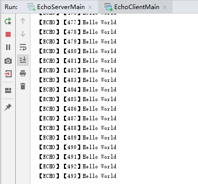 package com.bijian.netty.client.handler; import com.bijian.netty.util.InputUtil; import io.netty.buffer.ByteBuf; import io.netty.buffer.Unpooled; import io.netty.channel.ChannelHandlerContext; import io.netty.channel.ChannelInboundHandlerAdapter; import io.netty.util.CharsetUtil; import io.netty.util.ReferenceCountUtil; /** * 需要进行数据的读取操作,服务器端处理完成的数据信息会进行读取 */ public class EchoClientHandler extends ChannelInboundHandlerAdapter { private static final int REPEAT = 500;// 消息重复发送次数 @Override public void channelActive(ChannelHandlerContext ctx) throws Exception { for (int x = 0; x < REPEAT; x++) { // 消息重复发送 byte data [] = ("【" + x + "】Hello World").getBytes() ; ByteBuf buf = Unpooled.buffer(data.length) ; buf.writeBytes(data) ; ctx.writeAndFlush(buf); } } @Override public void channelRead(ChannelHandlerContext ctx, Object msg) throws Exception { // 只要服务器端发送完成信息之后,都会执行此方法进行内容的输出操作 try { ByteBuf readBuf = (ByteBuf) msg; String readData = readBuf.toString(CharsetUtil.UTF_8).trim(); // 接收返回数据内容 System.out.println(readData); // 输出服务器端的响应内容 } finally { ReferenceCountUtil.release(msg); // 释放缓存 } } @Override public void exceptionCaught(ChannelHandlerContext ctx, Throwable cause) throws Exception { cause.printStackTrace(); ctx.close(); } }