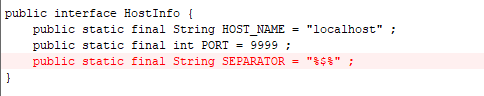 package com.bijian.netty.info; public interface HostInfo { public static final String HOST_NAME = "localhost" ; public static final int PORT = 9999 ; public static final String SEPARATOR = "%$%" ; }