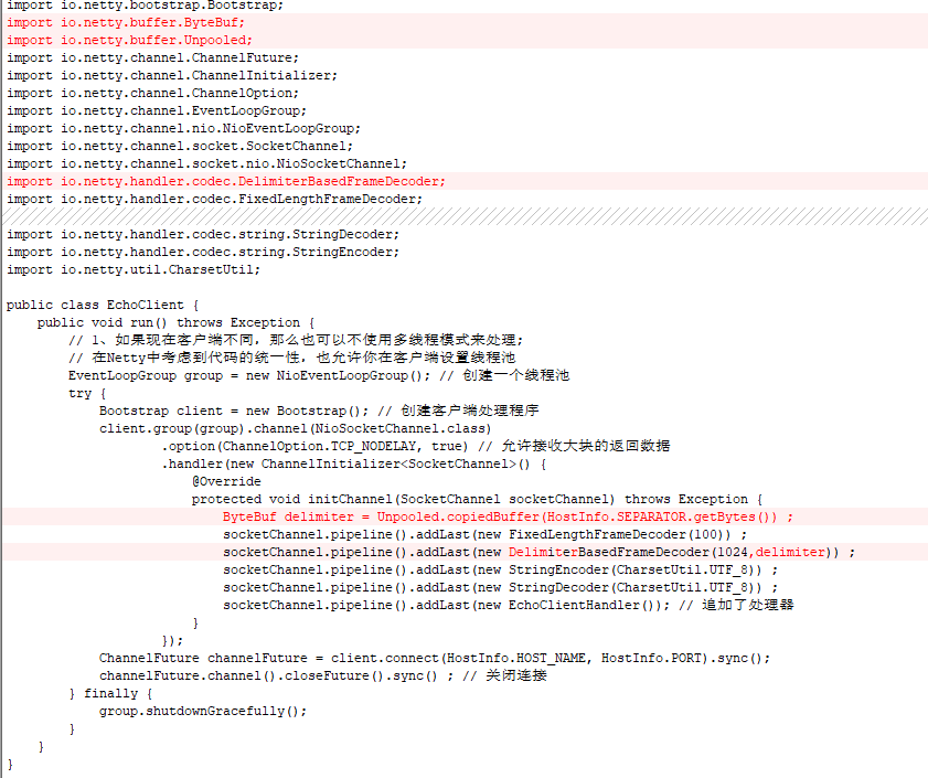 4.Netty默认分隔符是系统提供的分隔符常量,需要考虑分隔符的定义问题。