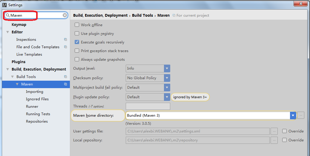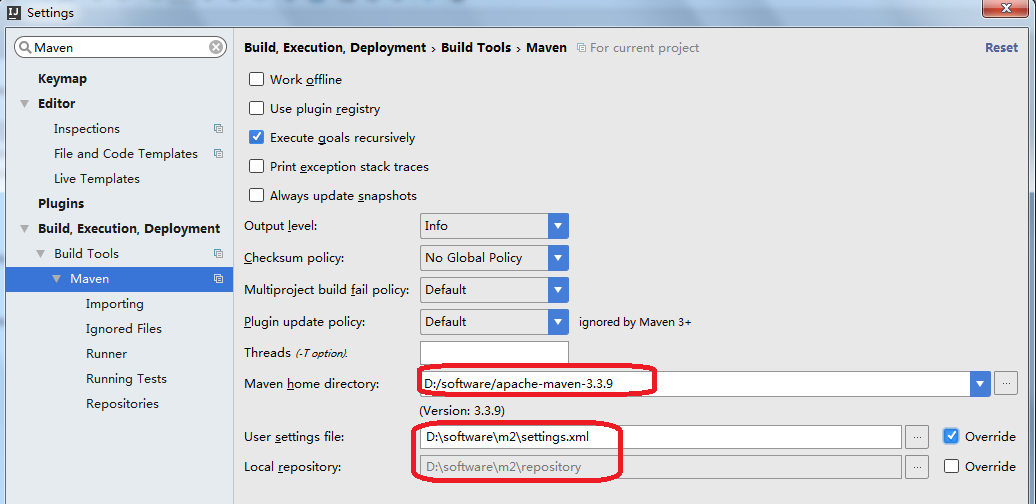 Maven home directory选择本地的Maven,User settings file选择本地Maven中的配置文件,Local repository选择本地的仓库路径。我这里选择完后如下所示: