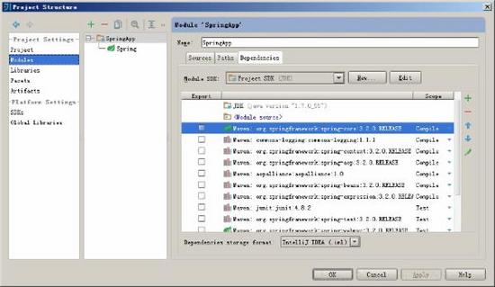 在Project Structure的Modules选项卡的Dependencies页面中,可以查看Maven所引用的项目。如果未找到指定项目,则对于项目将用红色波浪线提醒。同时,可在该选项卡中修改Maven的依赖项。