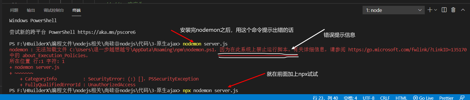 关于node自动重启插件安装提示系统禁止运行脚本问题