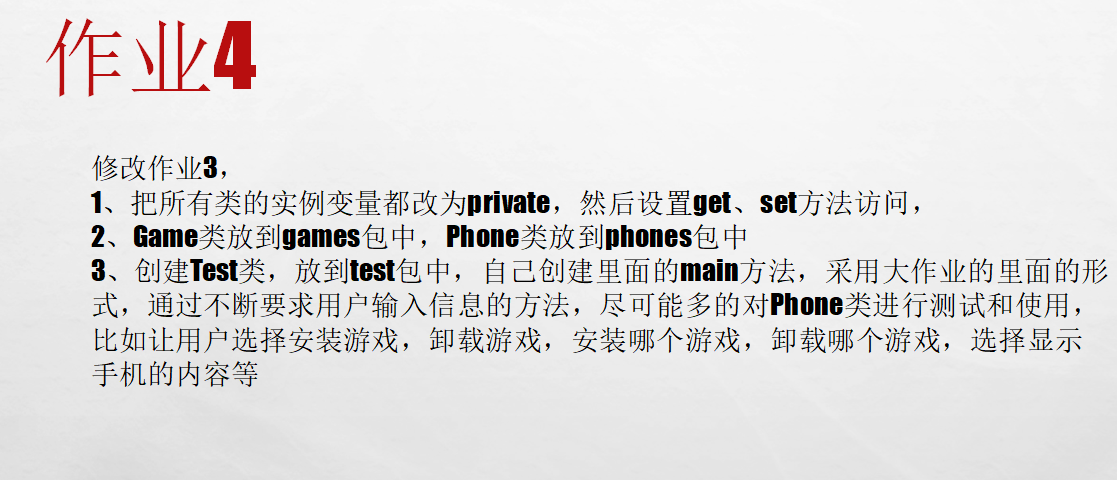 最后这一部分就没有上一部分那么难了,在将实例变量改为private后我们不能直接在外部修改变量或访问,只要定义get方法和set方法就能达成这两个需求了,记住用不同修饰符修饰的对象的访问权限。