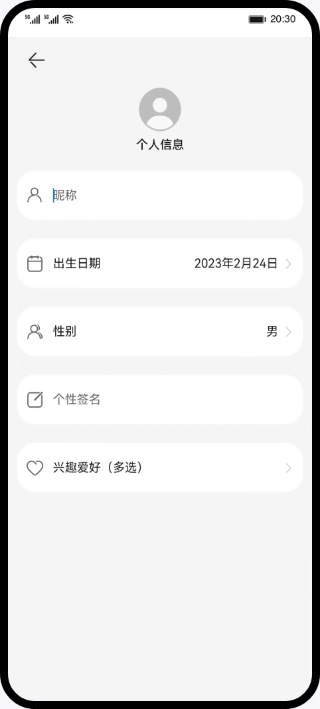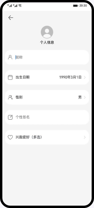 点击出生日期选项,通过CommonUtils.datePickerDialog方法弹出日期选择器弹窗,根据需要选择相应时间,效果如图所示: