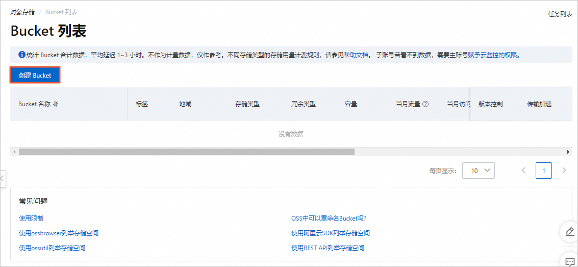 3. 创建OSS Bucket