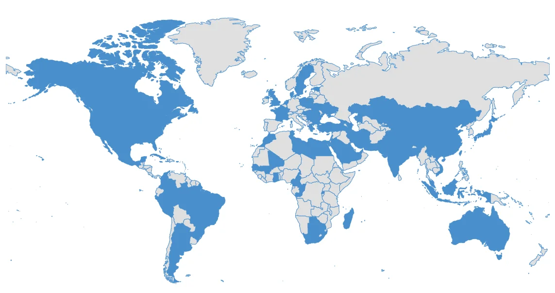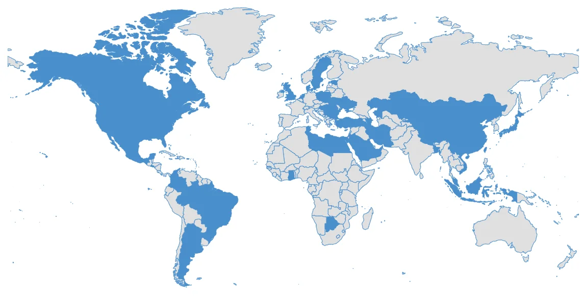 包含美国、英国、日本、加拿大、中国等在内的50+个国家和地区