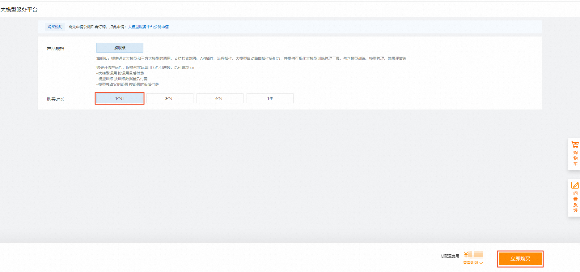 本实验预计产生费用4.61/时,0.8元/G公网流量。如果您调整了资源规格、使用时长,或执行了本方案以外的操作,可能导致费用发生变化,请以控制台显示的实际价格和最终账单为准。