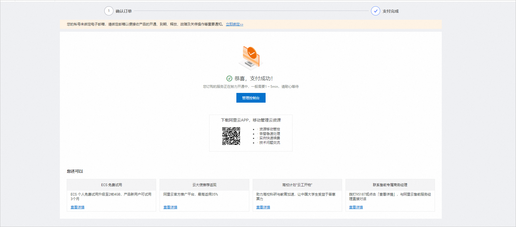 资源创建完成后,为了保护您阿里云主账号上资源的安全,请您重置云服务器ECS的登录密码、设置安全组端口。