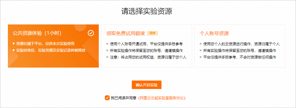 云起实验室将在您的账号下开通本次实操资源,资源按量付费,需要您自行承担本次实操的云资源费用。