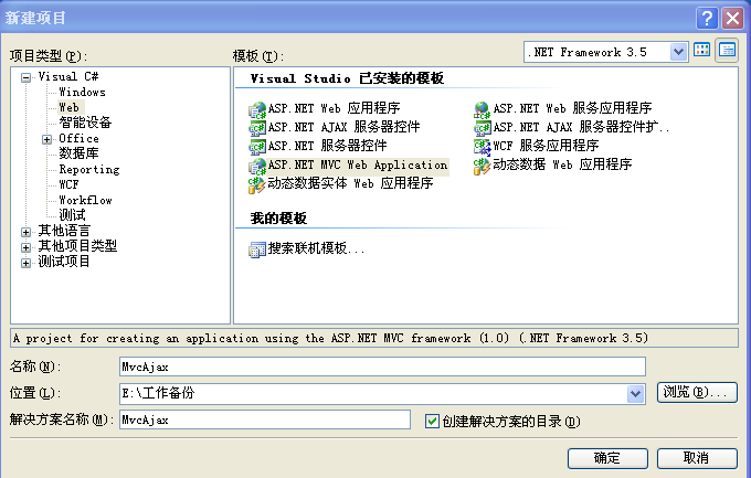 1.新建asp.net mvc项目,并命名为MvcAjax。