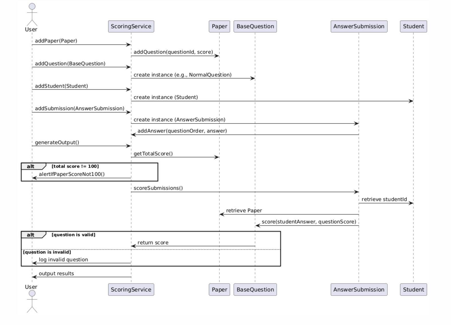 - NormalQuestion、ChoiceQuestion、FillBlankQuestion:分别实现了普通题、选择题和填空题的具体评分逻辑。