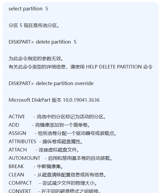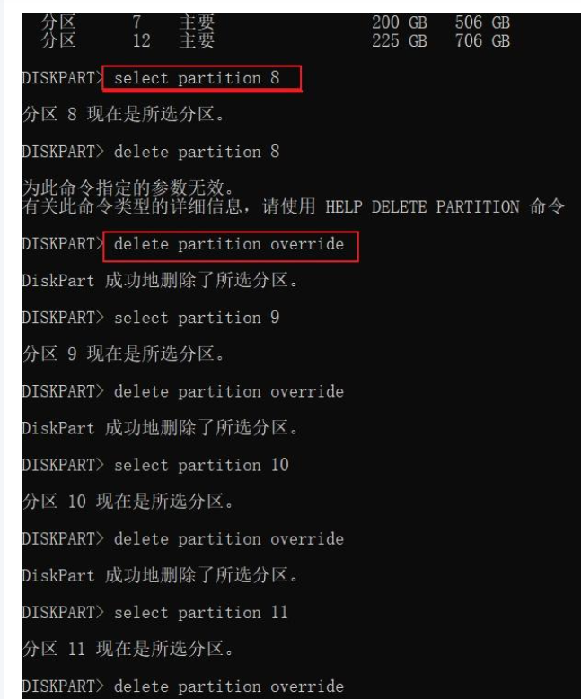 →delete partition override (删除分区,这一步需要谨慎操作,不要选错分区)